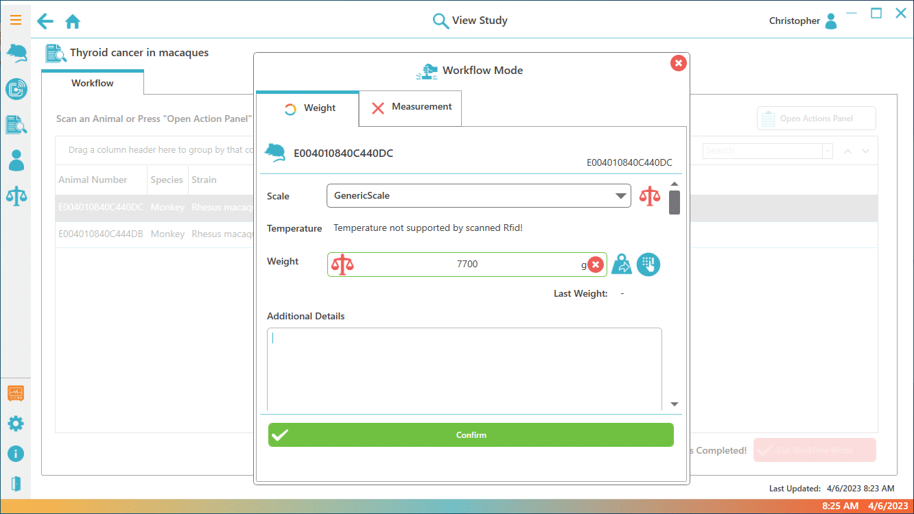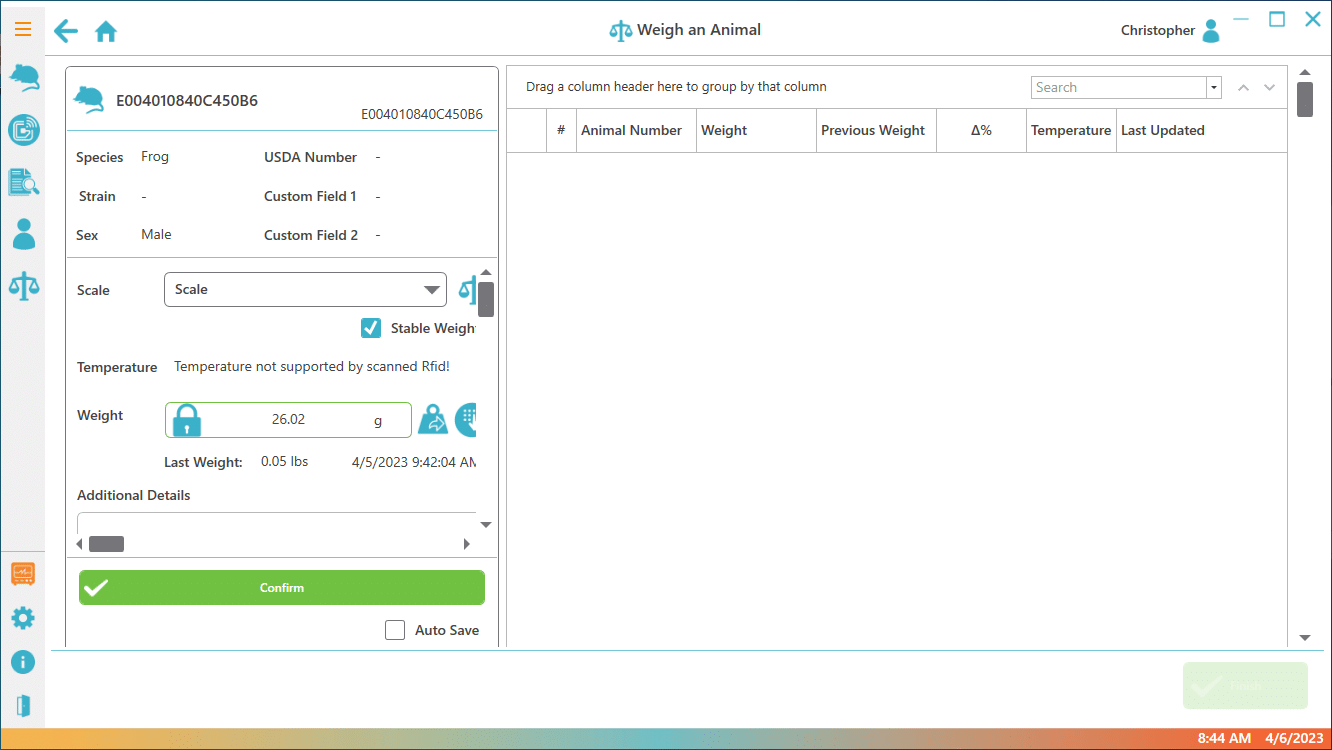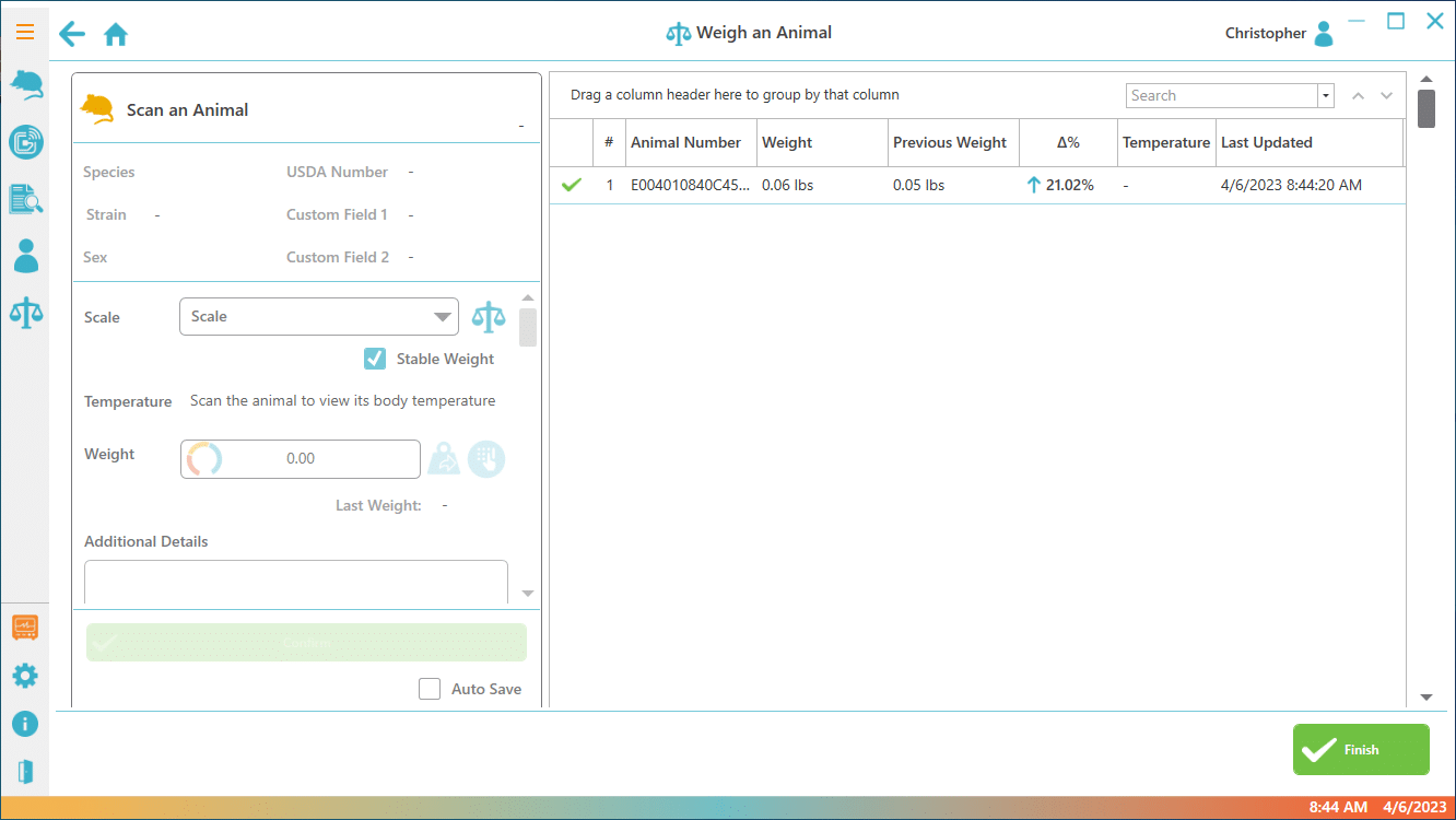 Explore PiSuite’s array of applications, specifically designed to simplify routine and labor-intensive laboratory tasks, including animal body weight recording, tumor measurements, animal dosing, microchip programming, and more.